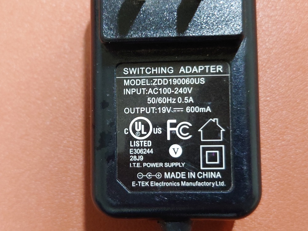 SWITCH ADAPTER ZDD190060US 19V 600mA 變壓器